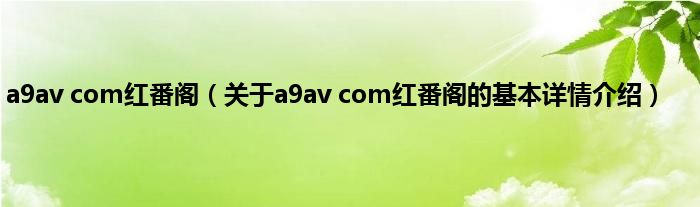 本文关于a9av com红番阁的基本详情介绍就讲解完毕,希望对大家有所帮助。