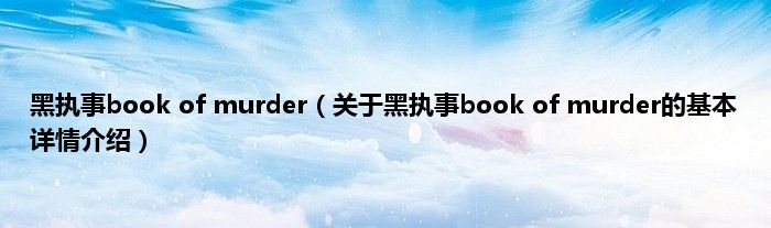 大家好我是小蝌蚪,黑执事book of murder,关于黑执事book of murder的基本详情介绍很多人还不知道,那么现在让我们一起来看看吧!