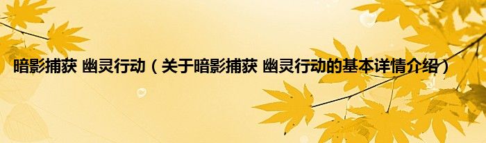 本文关于暗影捕获 幽灵行动的基本详情介绍就讲解完毕,希望对大家有所帮助。