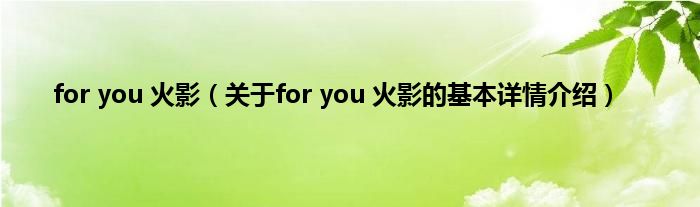 本文关于for you 火影的基本详情介绍就讲解完毕,希望对大家有所帮助。