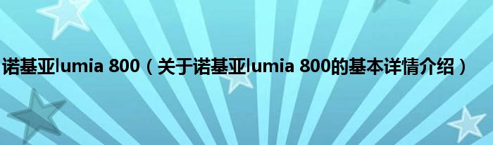本文关于诺基亚lumia 800的基本详情介绍就讲解完毕,希望对大家有所帮助。