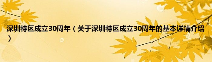 本文关于深圳特区成立30周年的基本详情介绍就讲解完毕,希望对大家有所帮助。