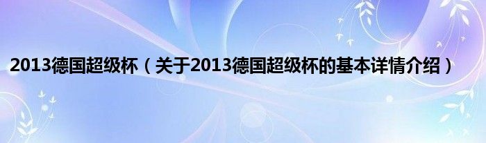 本文关于2013德国超级杯的基本详情介绍就讲解完毕,希望对大家有所帮助。