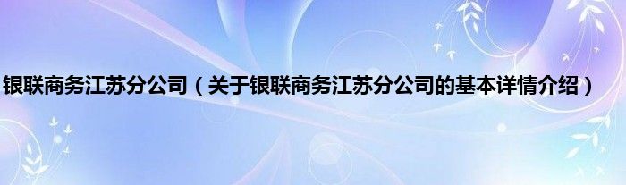 本文关于银联商务江苏分公司的基本详情介绍就讲解完毕,希望对大家有所帮助。