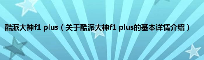本文关于酷派大神f1 plus的基本详情介绍就讲解完毕,希望对大家有所帮助。