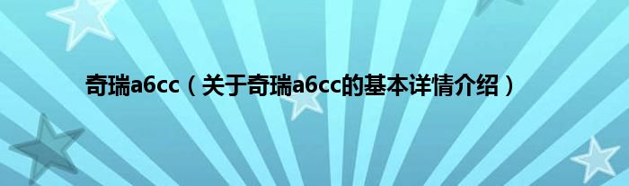 本文关于奇瑞a6cc的基本详情介绍就讲解完毕,希望对大家有所帮助。