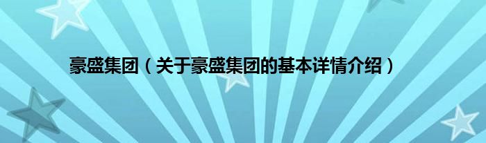 本文关于豪盛集团的基本详情介绍就讲解完毕,希望对大家有所帮助。