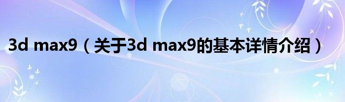 本文关于3d max9的基本详情介绍就讲解完毕,希望对大家有所帮助。