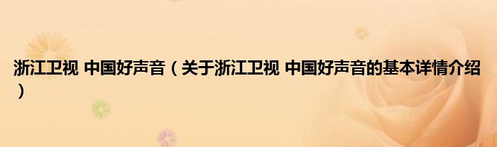 本文关于浙江卫视 中国好声音的基本详情介绍就讲解完毕,希望对大家有所帮助。