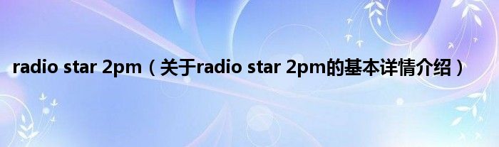本文关于radio star 2pm的基本详情介绍就讲解完毕,希望对大家有所帮助。