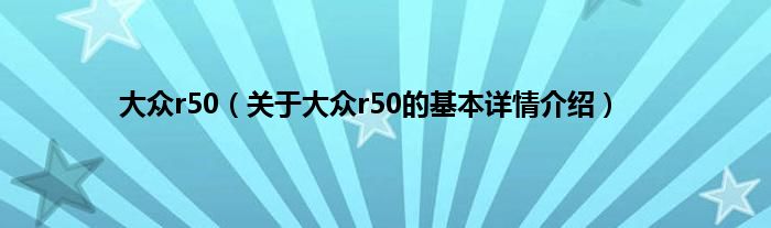 本文关于大众r50的基本详情介绍就讲解完毕,希望对大家有所帮助。