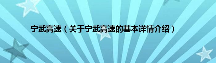 本文关于宁武高速的基本详情介绍就讲解完毕,希望对大家有所帮助。