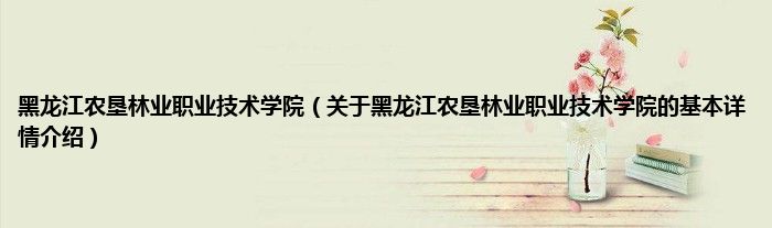 黑龙江农垦林业职业技术学院(关于黑龙江农垦林业职业技术学院的基本详情介绍)