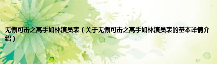本文关于无懈可击之高手如林演员表的基本详情介绍就讲解完毕,希望对大家有所帮助。