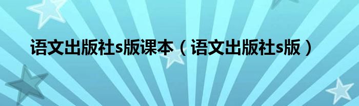 大家好,小问来为大家解答以上问题。语文出版社s版课本,语文出版社s版这个很多人还不知道,现在让我们一起来看看吧!
