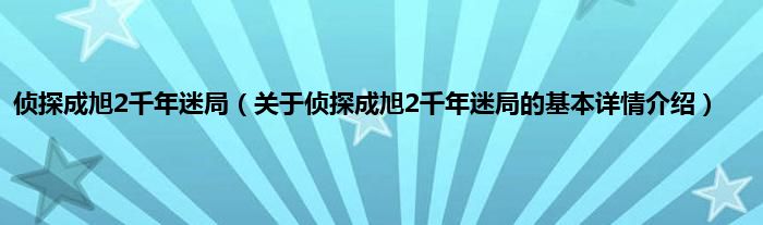 本文关于侦探成旭2千年迷局的基本详情介绍就讲解完毕,希望对大家有所帮助。