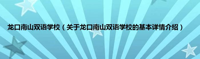 本文关于龙口南山双语学校的基本详情介绍就讲解完毕,希望对大家有所帮助。