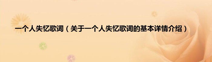 本文关于一个人失忆歌词的基本详情介绍就讲解完毕,希望对大家有所帮助。