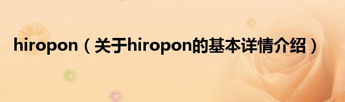 本文关于hiropon的基本详情介绍就讲解完毕,希望对大家有所帮助。