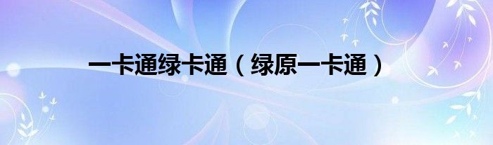 以上就是【一卡通绿卡通,绿原一卡通】相关内容。
