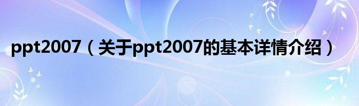 本文关于ppt2007的基本详情介绍就讲解完毕,希望对大家有所帮助。