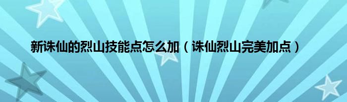 以上就是【新诛仙的烈山技能点怎么加,诛仙烈山完美加点】相关内容。