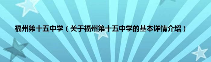 本文关于福州第十五中学的基本详情介绍就讲解完毕,希望对大家有所帮助。