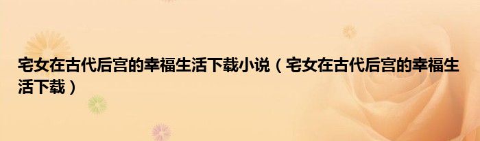 大家好,小问来为大家解答以上问题。宅女在古代后宫的幸福生活下载小说,宅女在古代后宫的幸福生活下载这个很多人还不知道,现在让我们一起来看看吧!