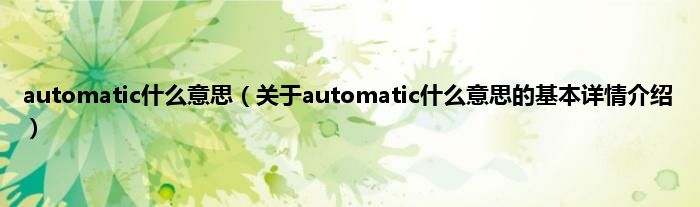 本文关于automatic什么意思的基本详情介绍就讲解完毕,希望对大家有所帮助。