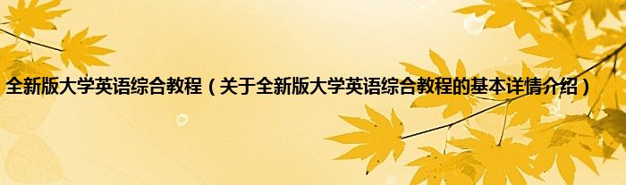 本文关于全新版大学英语综合教程的基本详情介绍就讲解完毕,希望对大家有所帮助。