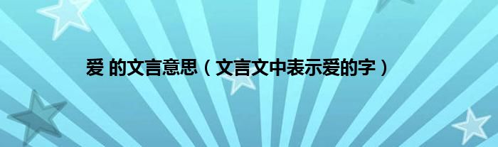 大家好,小问来为大家解答以上问题。爱 的文言意思,文言文中表示爱的字这个很多人还不知道,现在让我们一起来看看吧!