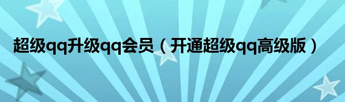 以上就是【超级qq升级qq会员,开通超级qq高级版】相关内容。