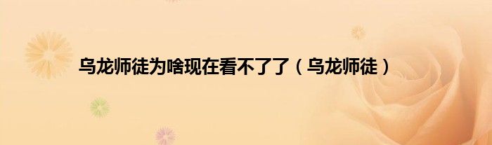 大家好,小问来为大家解答以上问题。乌龙师徒为啥现在看不了了,乌龙师徒这个很多人还不知道,现在让我们一起来看看吧!