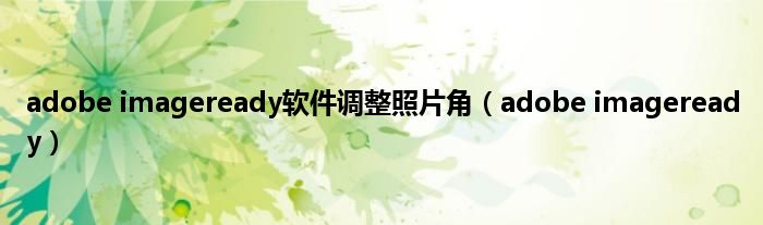 大家好,小问来为大家解答以上问题。adobe imageready软件调整照片角,adobe imageready这个很多人还不知道,现在让我们一起来看看吧!
