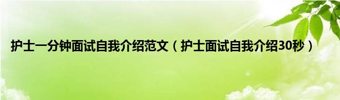 以上就是【护士一分钟面试自我介绍范文,护士面试自我介绍30秒】相关内容。