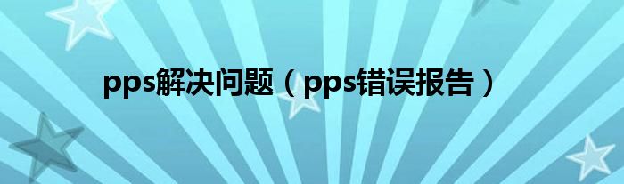 大家好,小问来为大家解答以上问题。pps解决问题,pps错误报告这个很多人还不知道,现在让我们一起来看看吧!
