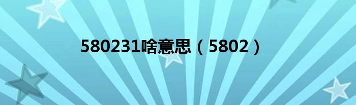 大家好,小问来为大家解答以上问题。580231啥意思,5802这个很多人还不知道,现在让我们一起来看看吧!