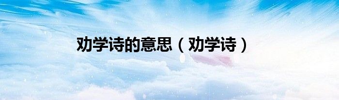 大家好,小问来为大家解答以上问题。劝学诗的意思,劝学诗这个很多人还不知道,现在让我们一起来看看吧!