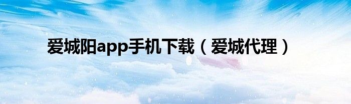 大家好,小问来为大家解答以上问题。爱城阳app手机下载,爱城代理这个很多人还不知道,现在让我们一起来看看吧!