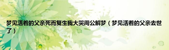 大家好,小问来为大家解答以上问题。梦见活着的父亲死而复生我大哭周公解梦,梦见活着的父亲去世了这个很多人还不知道,现在让我们一起来看看吧!