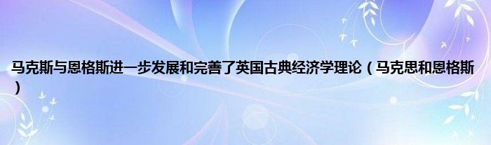 以上就是【马克斯与恩格斯进一步发展和完善了英国古典经济学理论,马克思和恩格斯】相关内容。