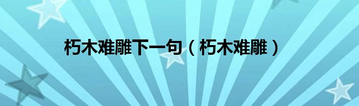 大家好,小问来为大家解答以上问题。朽木难雕下一句,朽木难雕这个很多人还不知道,现在让我们一起来看看吧!