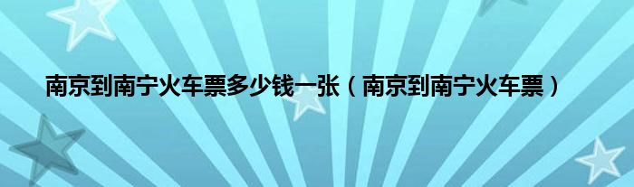 以上就是【南京到南宁火车票多少钱一张,南京到南宁火车票】相关内容。