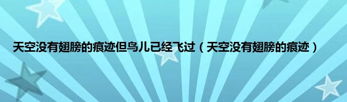 大家好,小问来为大家解答以上问题。天空没有翅膀的痕迹但鸟儿已经飞过,天空没有翅膀的痕迹这个很多人还不知道,现在让我们一起来看看吧!