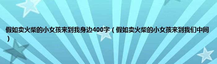 以上就是【假如卖火柴的小女孩来到我身边400字,假如卖火柴的小女孩来到我们中间】相关内容。