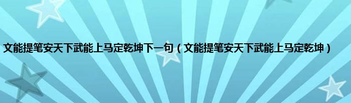以上就是【文能提笔安天下武能上马定乾坤下一句,文能提笔安天下武能上马定乾坤】相关内容。