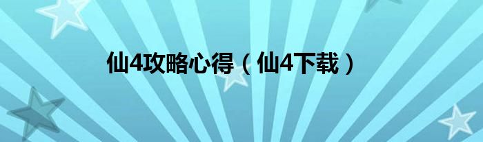仙4攻略心得(仙4下载)