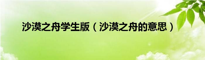 大家好,小问来为大家解答以上问题。沙漠之舟学生版,沙漠之舟的意思这个很多人还不知道,现在让我们一起来看看吧!