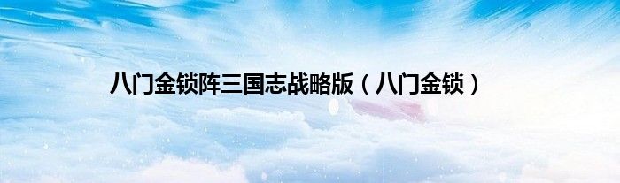 大家好,小问来为大家解答以上问题。八门金锁阵三国志战略版,八门金锁这个很多人还不知道,现在让我们一起来看看吧!