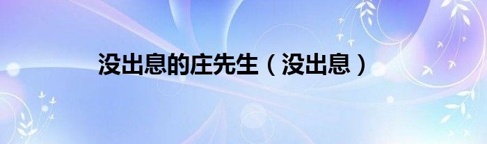 大家好,小问来为大家解答以上问题。没出息的庄先生,没出息这个很多人还不知道,现在让我们一起来看看吧!